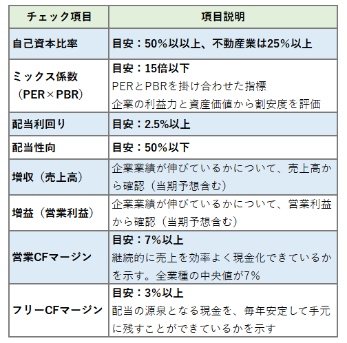四季報を読み進める中で、先ほど紹介した一覧の目安を満たす銘柄は投資候補として有力と判断できます